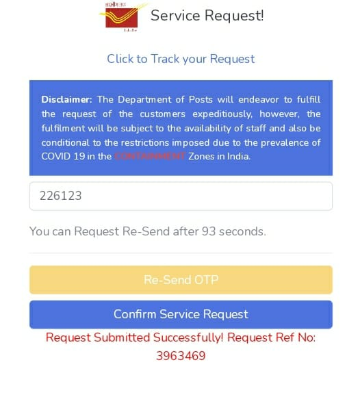 . ओटीपी क्यों सत्यापन करने के बाद आपको का सर्विस रिक्वेस्ट पर क्लिक करना होगा